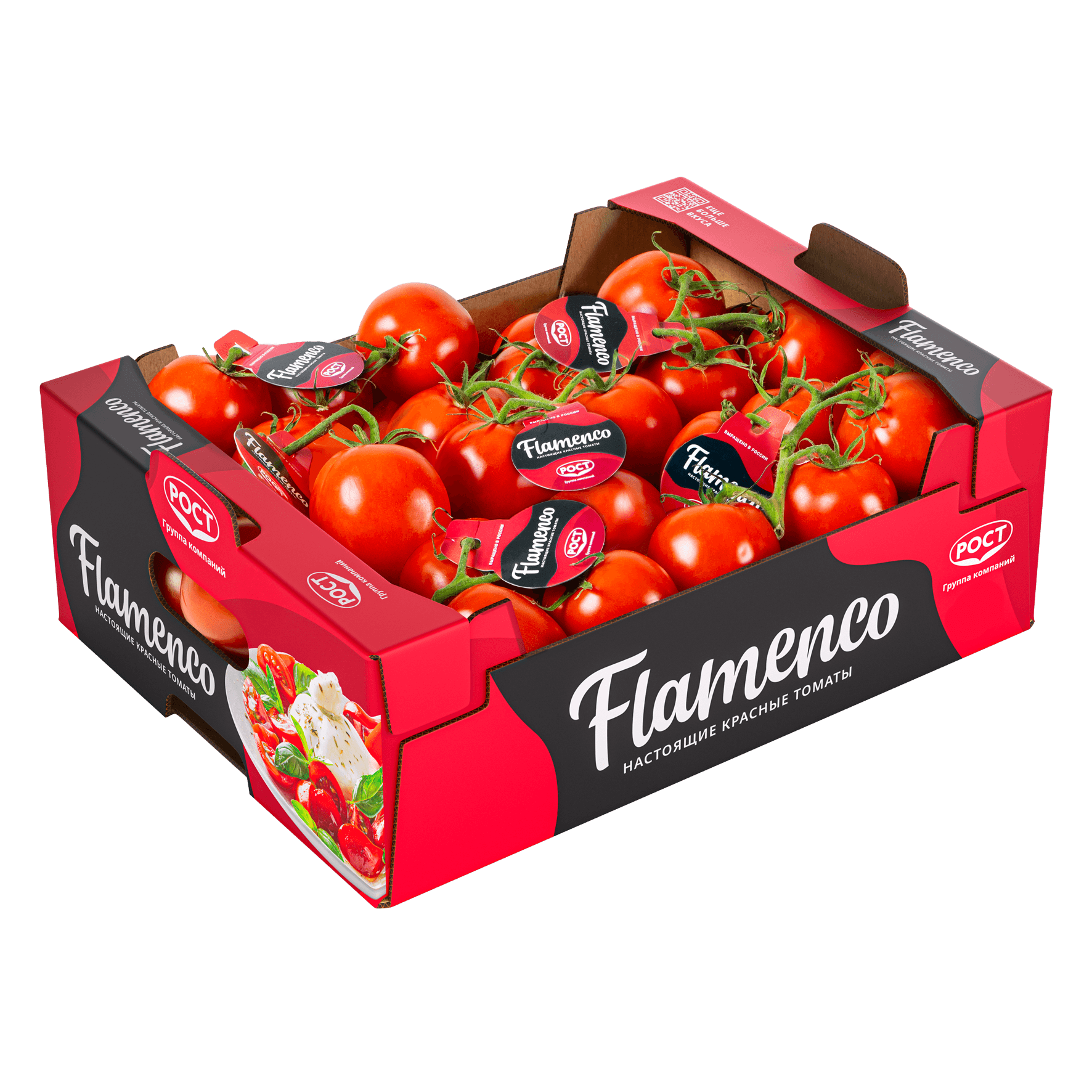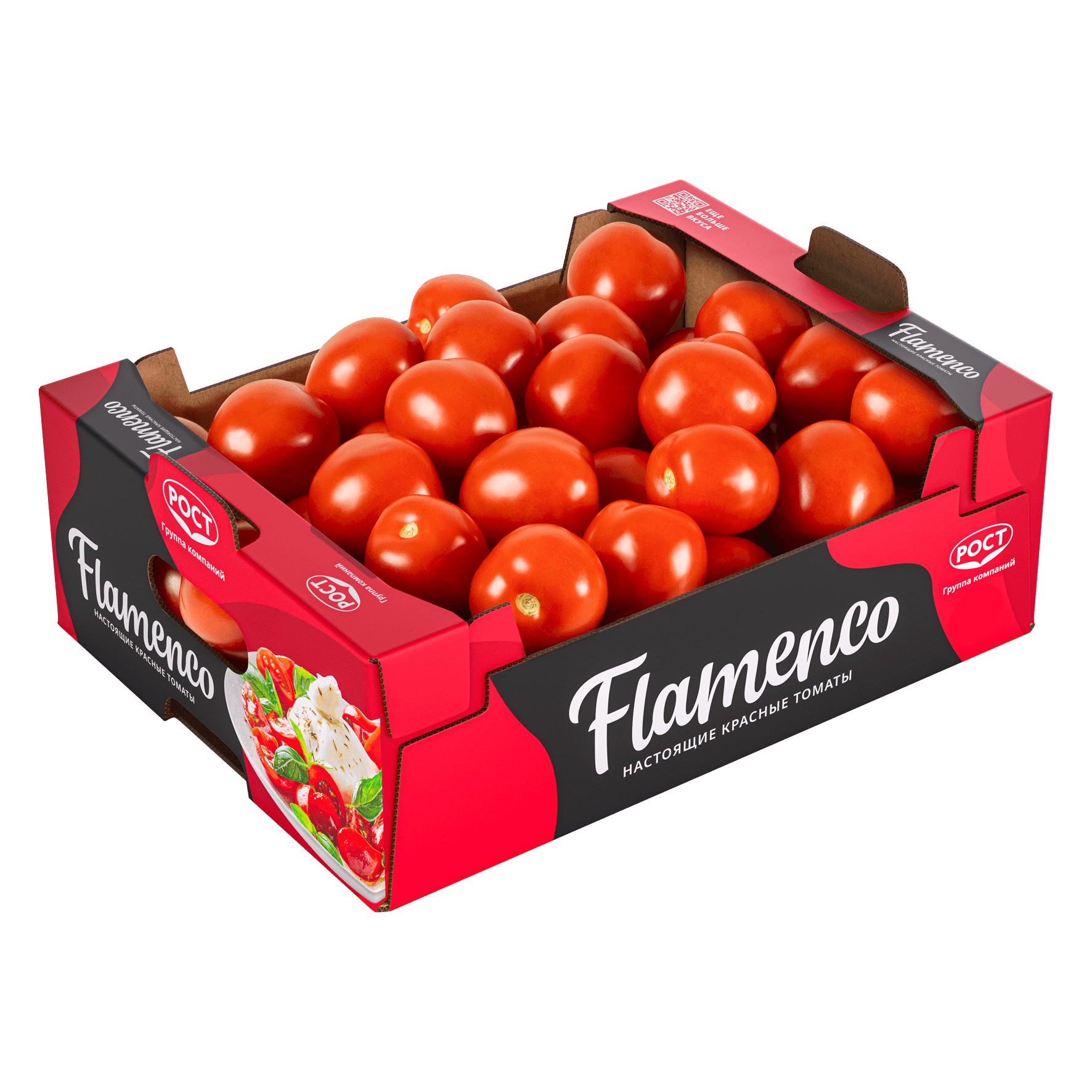 Насыщенно-красные внутри и снаружи, содержат на 50% больше полезного ликопина* (* по результатам независимой лаборатории в сравнении с обычными томатами РОСТ)